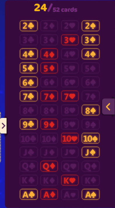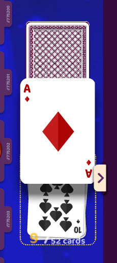 Tickets sold at 52-5 bingo games each contain 5 playing cards out of the standard 52-card deck. The cards are revealed immediately upon ticket purchase.